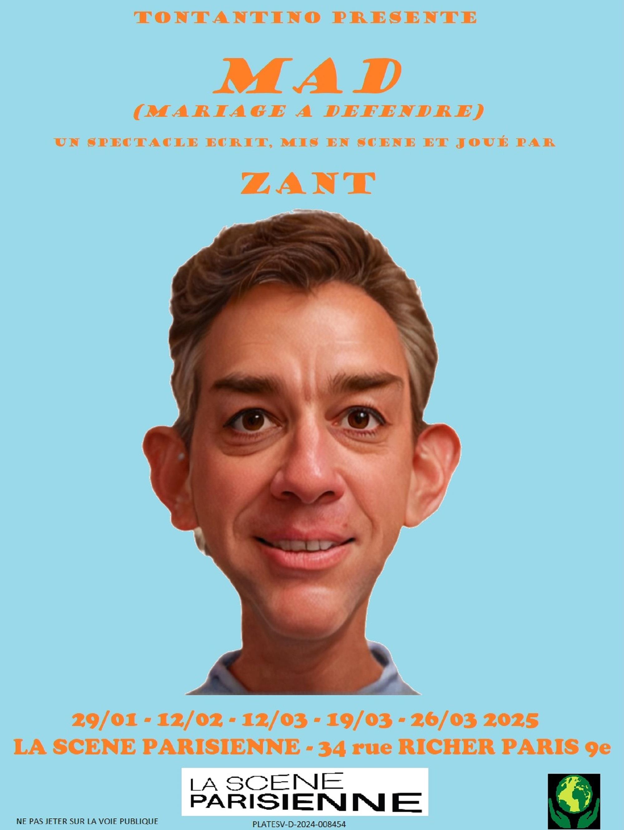 Zant est de l'ancienne génération et s'affranchit de la mode du stand-up avec des sketchs séquencés. La diversité et la justesse, variable, de ses personnages fait le reste. En plus, on a appris sur place qu'il jouait aux profit d'associations consacrées à l'enfance.