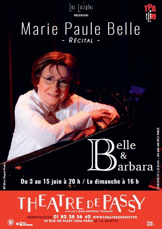 Pionnière en son genre, Marie Paule Belle a été la première à offrir une nouvelle vie aux chansons de Barbara, un spectacle qui a rencontré un succès unanime à travers les pays francophones, mais aussi en Allemagne, en Pologne et au Japon. C’est avec un désir profond qu’elle rouvre cette parenthèse magique dans l’œuvre de la Dame Brune.