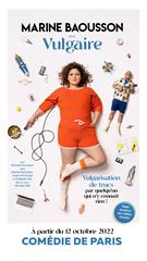 « Moi, depuis toujours, je me sens complexée par mon manque de culture générale : autant, je suis incollable sur Friends ou les Spice Girls, mais dès qu’on parle d'Art, de Géo, d’Histoire, de mécanique ou des mots compliqués, je n'y connais absolument rien ! Et mon but dans la vie c'est de faire croire à tout le monde que « si, si, bien sûr, je sais ce que c'est, la radioactivité... qui sont les Francs-Maçons... ou ce qu’il se passe dans Le Rouge et le Noir de Stendhal... » Alors je me suis attaquée à plein de sujets, je suis allée sur internet, j’ai lu, j’ai posé des questions... pour les comprendre, et les transmettre avec humour. Je ne suis pas historienne, pas mécanicienne, pas scientifique... mais dans ce spectacle, je vais vous expliquer seulement ce que j’ai compris. Voilà Vulgaire, c’est ça : un spectacle de vulgarisation de trucs par quelqu'un qui n'y connait rien. Et ce qui est bien, c’est que c’est vous qui choisirez les sujets que je vais expliquer... » Marine Baousson
