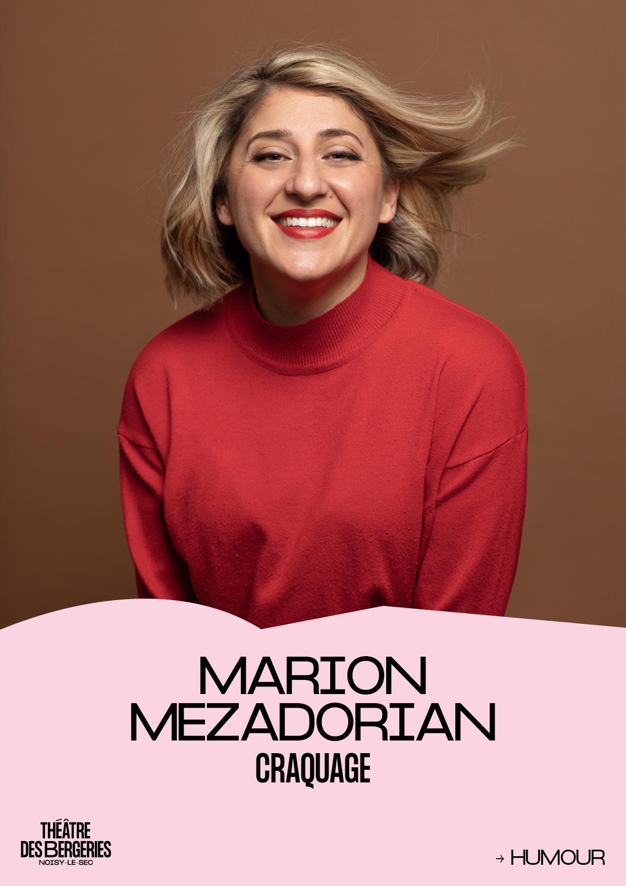 Dans son premier spectacle Pépites, Marion Mezadorian nous a régalé par ses talents de comédienne en interprétant à merveille les personnages drôles et touchants qui ont croisé sa route. Craquage, c'est votre mère, votre meilleur ami, votre voisine, votre collègue, Vous. Ce jour-là, on le sent, c'est la goutte de trop, on craque : on déballe tout et ça fait un bien fou !