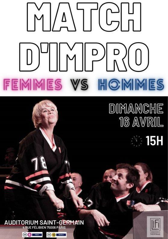 La LiFi propose un match d'impro Femmes Versus Hommes avec dans chaque équipe 4 comédien(ne)s qui s'opposeront sur deux périodes de 45 minutes. Un match détonnant sous l’œil aiguisé de l'arbitre, Philippe Patois, le maître absolu du jeu et avec la complicité de Jérémy Charbonnel en maître de cérémonie !