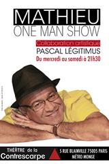 Membre permanent en son temps du Petit Théâtre de Bouvard, son visage vous dira quelque chose. il en gardera une franche amitié avec Pascal Légitimus qui, à l’annonce du projet du One Man Show de Mathieu, n’hésita pas à lui offrir sa participation en marquant de son empreinte ce spectacle par une brillante collaboration artistique.