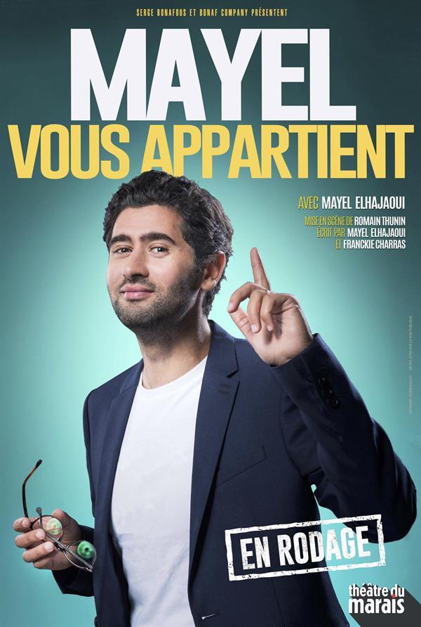 Dans ce premier spectacle, Mayel Elhajaoui se raconte en vrai : du Maroc à la Picardie, en passant par Paris et Sète, Mayel se livre. Comment est-il parti d'Amiens en quittant ses 11 frères et soeurs, comment a-t-il rencontré son agent ou comment a-t-il trouvé l'amour avec une descendante de la famille De Saint Exupéry, vous saurez tout car « Mayel vous appartient » !