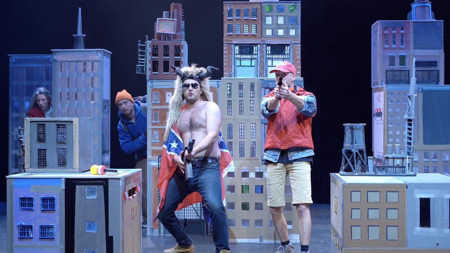 MégaZilla Bémol est une comédie musicale « à l’américaine », complètement déjantée, parodiant avec jubilation les films catastrophe et les films de monstres des années 1990, se jouant avec délice et un humour résolument potache de tous les clichés de ce genre cinématographique rentré dans la culture populaire.
