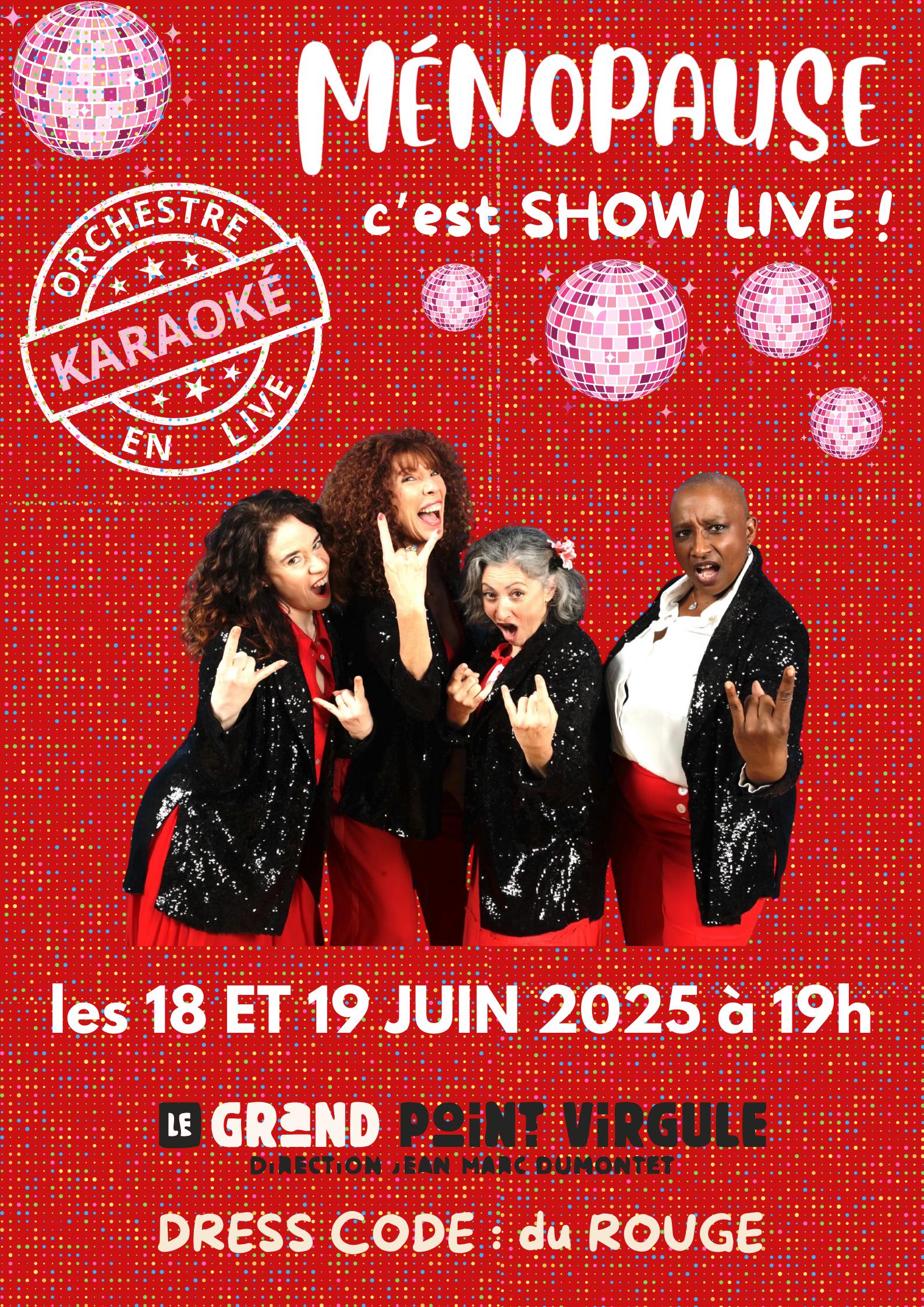 Venez fêter avec nous le premier anniversaire de Ménopause au Grand Point-Virgule, avec 5 musiciens en live pour accompagner nos formidables comédiennes et les chansons entièrement en mode karaoké dans une ambiance de folie.