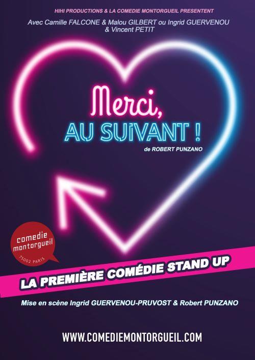 Merci, au Suivant !, une comédie hilarante, moderne et piquante, écrite par l'auteur du succès Ce soir ou jamais, dans laquelle l'auteur vous offre un savoureux mélange de comédie, café-théâtre, stand-up, improvisation.