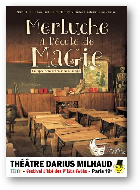 Merluche à l’école de magie est une pièce pédagogique adaptée à tous. Cette pièce met en scène un élève ayant perdu confiance en lui. Grâce à la bienveillance d’un professeur particulier, il va retourner sur le chemin de la réussite. C’est un spectacle interactif qui mêle théâtre et magie. Les phases de dialogues ont été inspirées entre autres d’Albert Jacquard et mettent en avant que : la bienveillance est un excellent moyen d’apprentissage et que la persévérance permet d’atteindre ses rêves.