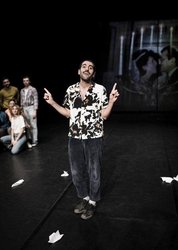 Le metteur en scène interroge les notions de transmission entre deux générations, de mémoire et d’héritage, contre ou avec lequel on se construit. Au travers de photos de mariage, de messages téléphoniques ou encore d’anecdotes de vie s’édifie une pièce chorale qui dépeint la réalité de la relation parents-enfants d’aujourd’hui. Sur un plateau quasi nu, les élèves de la promotion 10 de l’école du TNB ne se contentent pas de décrire et de raconter ceux qui les ont élevés. Ils les incarnent aussi, les caricaturent parfois, portant sur eux un regard tendre et cruel. Leurs confidences nous touchent avec légèreté et justesse.