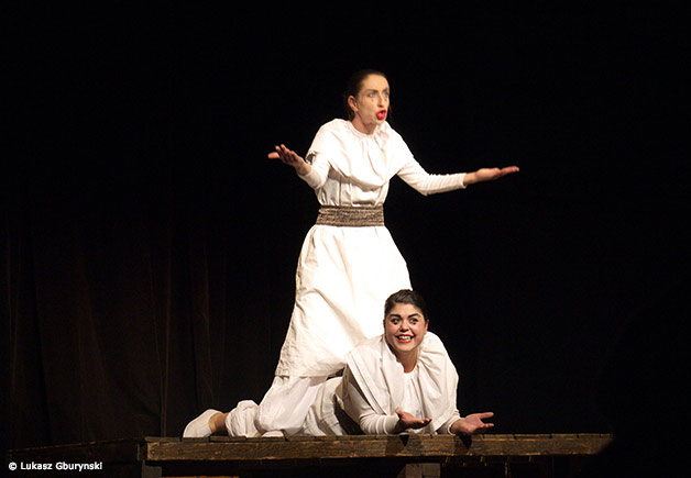 Volontairement, nous avons voulu réduire les accessoires au strict minimum : deux écharpes et deux poupées de chiffon, sorte de doubles inversés de Miche et Drate, sorte d’êtres abstraits, schématiques, universels, et pourtant si humains et si différents.
