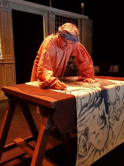 L’impossibilité pour Michel-Ange de se faire seconder, l’apparition de salpêtre sur les fresques, les colères du pape… La trame de la pièce suit les grands moments de la création historique, mais le récit prend toutes les libertés nécessaires à la dramaturgie.
