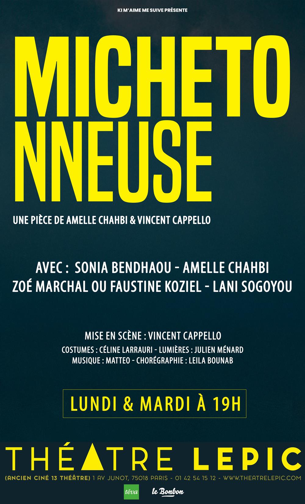 « Le désir de monter cette pièce de théâtre sur les michetonneuses vient tout d'abord de l'observation méthodique de nombre d'entre-elles. Elles ont une aura et une assurance en toute circonstance. Elles ont cette capacité rare comme l’ont les grands bandits et certains artistes torturés, de brûler leur existence. Mais avec le temps apparaissent les failles sous leurs jolies masques, une souffrance voire une urgence derrière la fête, les paillettes et les rires. Elles ont cette terrible faculté de mettre leurs sentiments de côté et de ne jamais se laisser envahir par leurs émotions. Pourtant, elles sont paradoxalement capables de grands élans de générosité inattendue. Indéniablement le produit de notre société contemporaine, elles en sont peut-être aussi le miroir. »