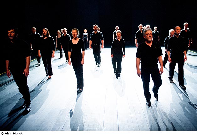Une étrange unité sonore émane de la manifestation, qui dépasse l’engagement du chœur pour s’étendre à la salle, comme si chaque mise à l’épreuve nouvelle unissait un peu plus les chanteurs au public, les rendait solidaires. Mickaël Phelippeau bouleverse l’auditoire en bouleversant l’ordre convenu, pointant la solitude dans le collectif, le désarroi dans l’assurance, l’immobilité dans le mouvement. Souffle dans l’air quelque chose qui appartiendrait à une instance supérieure, comme une essence musicale portée par des corps décidés à tenir, même et surtout lorsqu’il ne reste plus qu’une seule gorge pour tenir la note envers et contre toute tentation d’extinction.