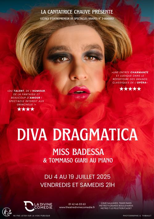 On dira maintenant "La Badessa", comme on disait "La Malibran"... Cette personnalité pétrie de talent, d'humour et d'esprit, secondée artistiquement par un accompagnateur/souffre douleur à la délicate interprétation, vous fera vous délecter d'une charmante pause musicale… Bravo "Diva"!