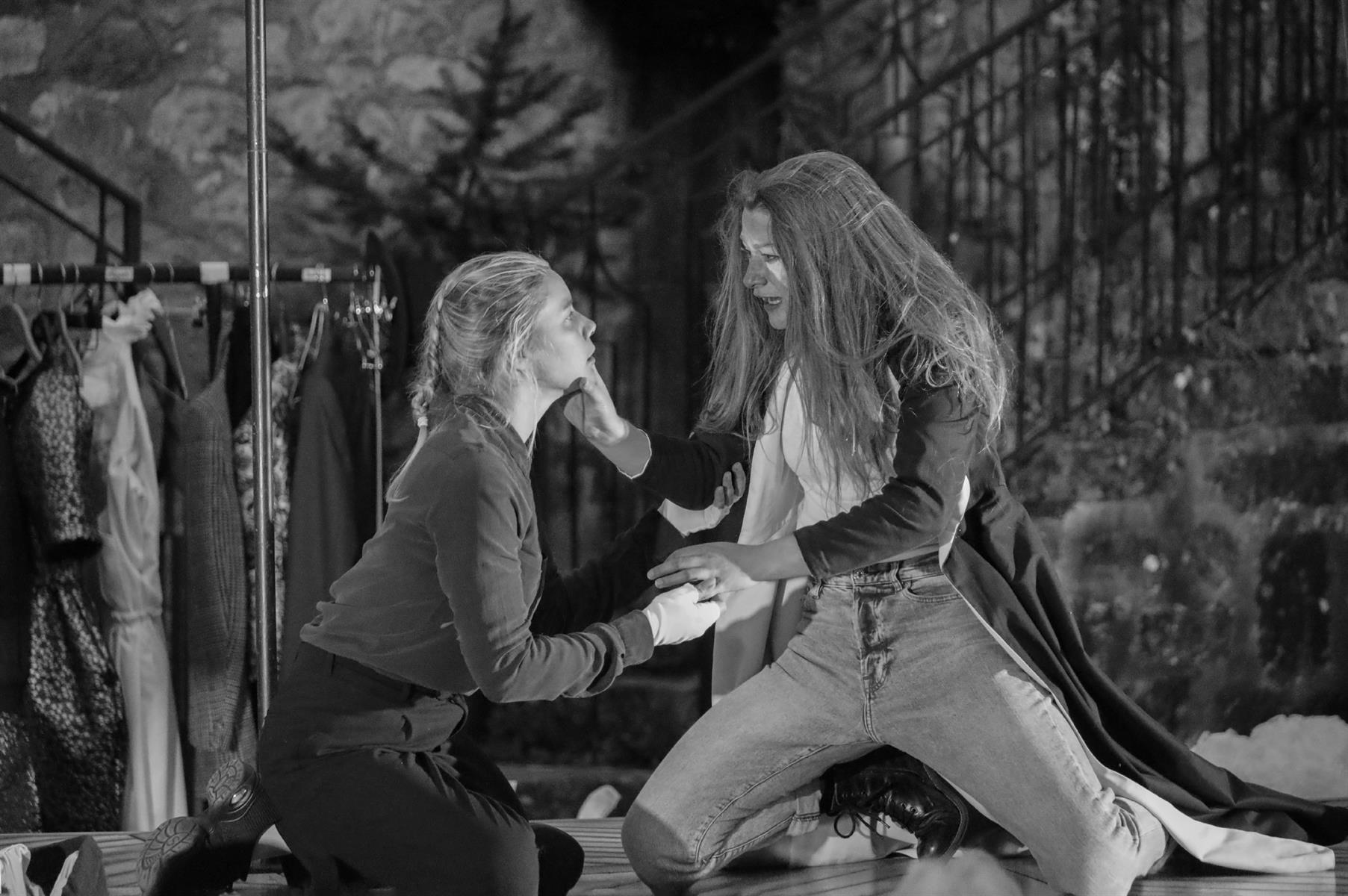 Comédie sur la vie et la mort du célèbre dramaturge, Molière et ses masques parle de notre temps. Une pièce mêlant la farce, la comédie de mœurs, la fable politique et historique, le masque et la musique. Une pièce pour trois acteurs et trois actrices musicien·nes. Dans un rythme effréné, sur un tréteau de bois tel un navire, ils et elles passent d’un rôle à un autre : Molière, Madeleine Béjart et toute la troupe, Richelieu, Louis XIV, des faux dévots et des courtisan·es.