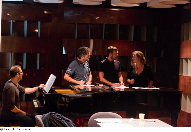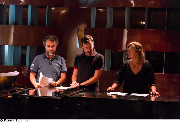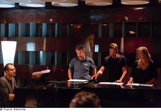 J’ai alors fait appel à deux grands chanteurs, Olivier Dumait et Ronan Nédélec qui faisaient tous deux partie de la distribution de La petite Renarde Rusée, opéra de Léos Janacek que j’avais mis en scène au festival d’Aix en Provence. Pour nous trois, et avec Colin Rey, j’ai entrepris l’adaptation du texte de Brian Friel dans la traduction d’Alain Delahaye. Nous avons travaillé à élaborer une partition musicale à trois voix et nous avons invité Nikola Takov à nous rejoindre au piano.