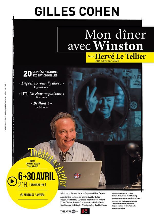 Après l’excellent Moi et François Mitterrand, Hervé Le Tellier, auteur de l’Oulipo, récidive dans le dialogue imaginaire du petit homme avec un grand homme, cette fois Winston Churchill. Toute la truculence et les paradoxes de l’incongru libérateur du monde nous sont révélés dans ce seul en scène interprété magistralement par Gilles Cohen (Le Bureau des légendes).