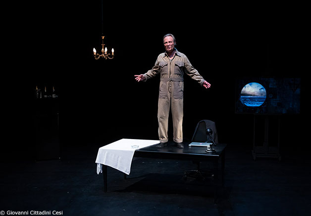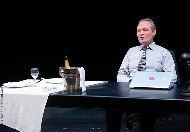 Grand Prix de l’humour noir en 2013, l’auteur a écrit romans, poèmes, pléthore de billets pour Le Monde ou Des Papous dans la tête. Mathématicien de formation, membre de l’Oulipo dont le Rond-Point est une antichambre, Hervé Le Tellier dresse un savoureux état du monde depuis la figure touchante d’un fou de Churchill. Gueule étrange du cinéma français, acteur vedette de la série Le Bureau des légendes, Gilles Cohen a mis ici en scène Zouc par Zouc avec Nathalie Baye, La Baignoire et les Deux Chaises, joué Revenez demain de Blandine Costaz. Il organise le repas, invite à sa table l’un des incongrus libérateurs du monde, et se confond à son idole pour se sauver lui-même.