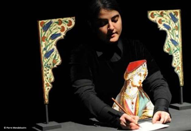 Le spectacle Mon nom est Rouge est construit à l’image des miniatures persanes, réalisées en touches successives par les peintres, enlumineurs, doreurs et calligraphes sous la direction du Grand Maître de l’atelier. Grâce à l’enchantement du théâtre de papier et à la musique interprétée sur scène par Siamak Jahangiry, maître du ney (flûte orientale), les multiples personnages et voix du roman s’animent en une grande fresque colorée.