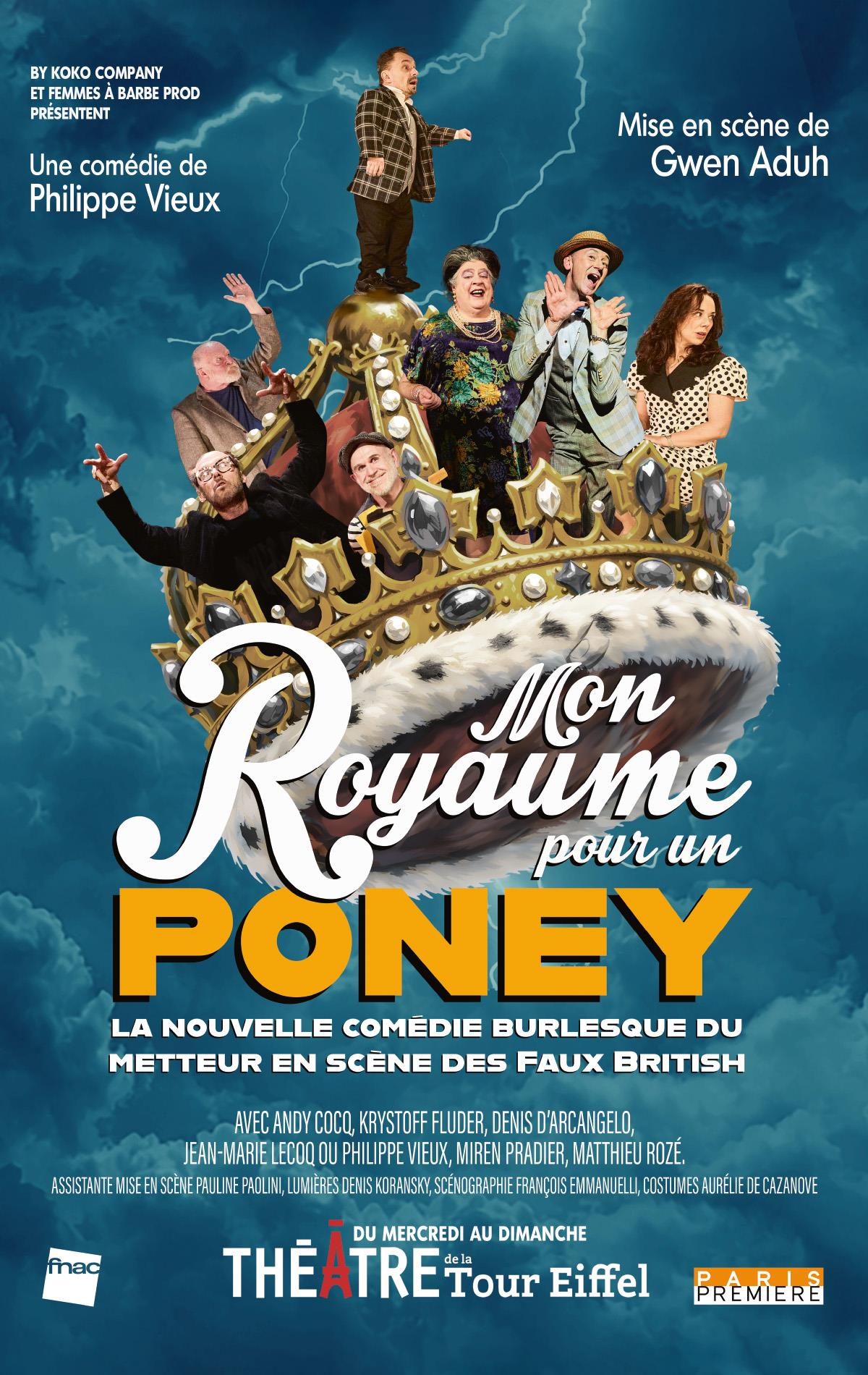 Tout le monde connaît la citation de William Shakespeare dans Richard III « mon royaume pour un cheval » ! Mais si Richard est trop petit, il montera sur un poney, voilà tout ! Mon royaume pour un poney : Une comédie Burlesque sponsorisée par les meubles Mignois !