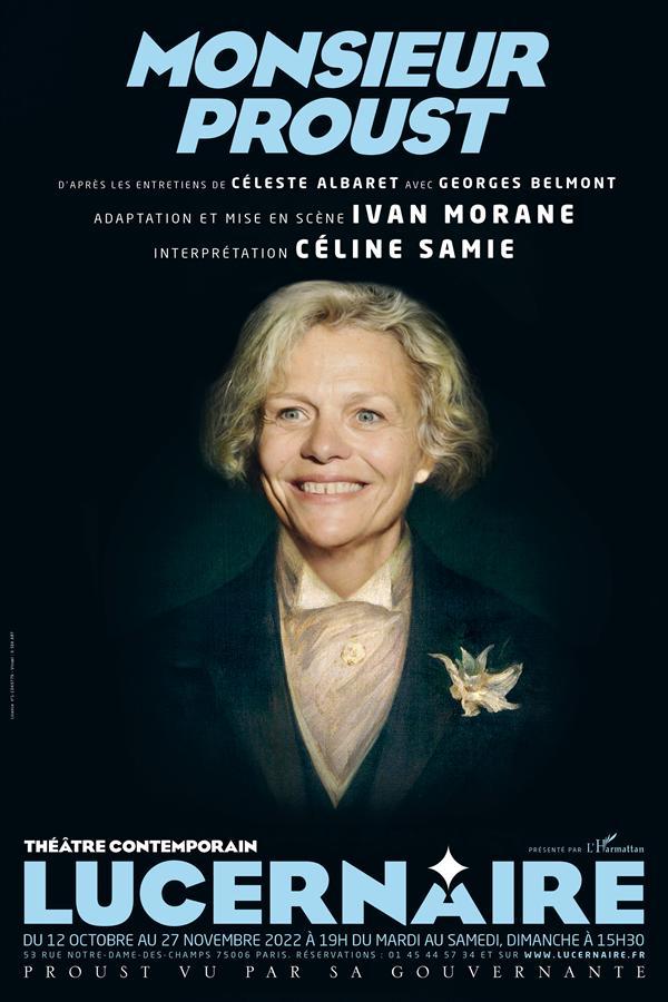 Notre spectacle est construit non pas sur l’œuvre de Proust mais sur Proust lui-même. Il met en scène celle qui l’a le plus fréquenté et sans doute le mieux connu : Céleste Albaret, sa dernière gouvernante de 1914 à 1922. Ses propos, recueillis par Georges Belmont, apportent des révélations sur le quotidien de Proust et offrent son propre portrait; un personnage féminin éminemment théâtral qui portait à Proust un « amour » inconditionnel. Le spectacle est donc une sorte de « 2 en 1 » : Proust et Céleste ou Céleste et Proust !