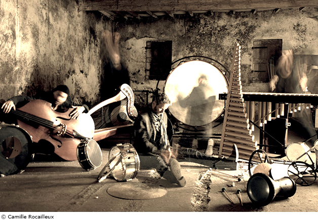 Camille Rocailleux réunit sa bande, Bertrand Blessing et Mathieu Ben Hassen, dans un concert augmenté où les genres, les rythmes et les influences s’entrelacent, se percutent et fusionnent avec une partition visuelle réalisée par Benjamin Nesme. Le vidéaste joue sur la lumière, les échelles des surfaces de projection, le grain des images glanées sur le web et la projection d’invités virtuels. Les musiciens aux corps sonores habitent cette toile, matière brute et vivante, pour conduire une révolution pleine de vie et de métissages. Parce que le monde, toujours en mouvement, se partage !