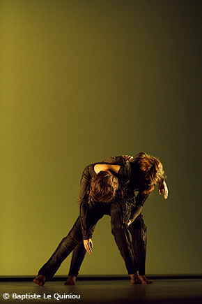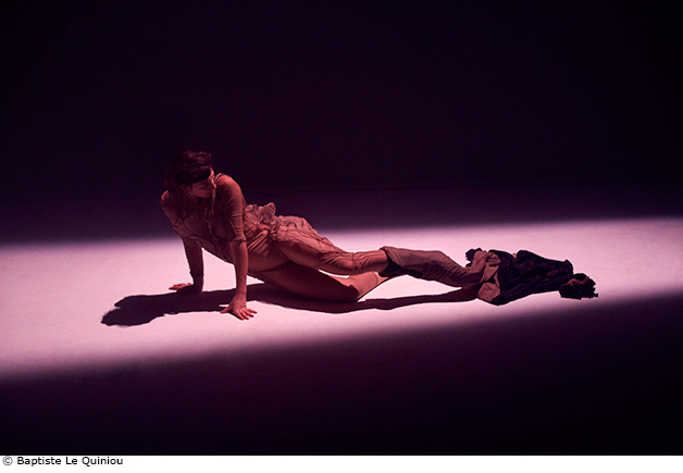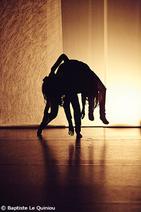 Dans un grand cosmos d’ombres et de lumières, évolue un être hybride. Une créature à huit pattes, un corps double et étrange, dont les mouvements et les contours se confondent. On ne distingue pas lequel agit sur l’autre, le transporte.
