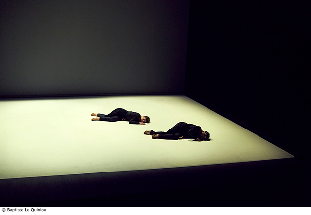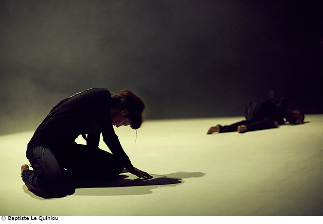 Poème visuel et chorégraphique, Mue nous embarque dans un parcours initiatique, sur le fil tendu entre la vie et la mort, l’inertie et le mouvement, le dedans et le dehors. Une femme et son double, le corps réel et le corps fictif se confrontent, se combattent même. Leurs métamorphoses troublent l’observation.