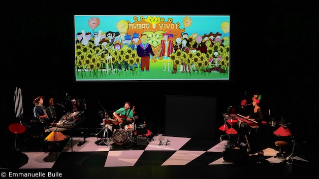 Quand deux artistes inspirées par la culture mexicaine mettent en musique un film d’animation, cela donne un ciné-concert burlesque qui parle du monde du travail et de la mort aux enfants. À partir de 6 ans.