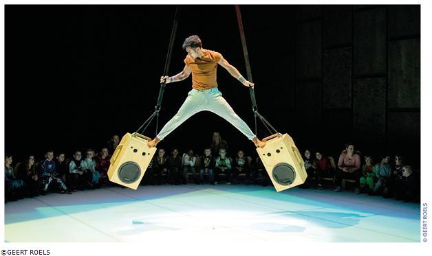 Murmur invite enfants et parents, munis de sacs à dos chantants, à suivre les évolutions d’un acrobate, au sol comme dans les airs. Du cirque-théâtre sonore qui stimule tous les sens. Une composition imaginative pour tous ceux qui ont parfois envie d’être plus qu’un être humain. Dès 4 ans.