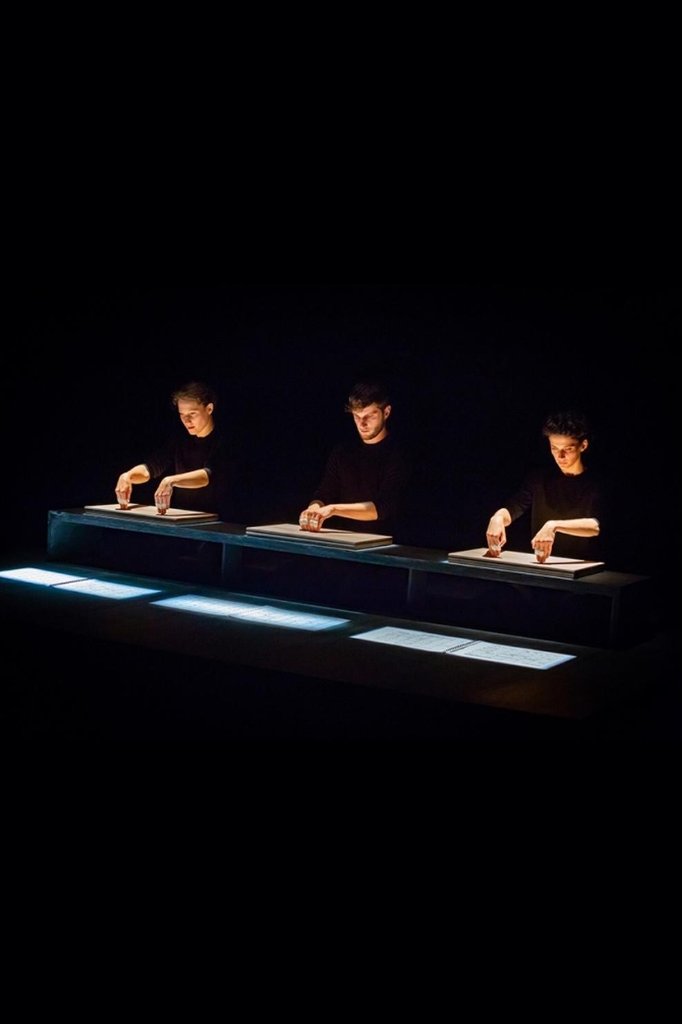 Trois visages, six mains et trente doigts sont les personnages de ce spectacle peu ordinaire. Musique de tables, composée par Thierry de Mey en 1987, est une partition pour trois percussionnistes disposant de tables pour seuls instruments.