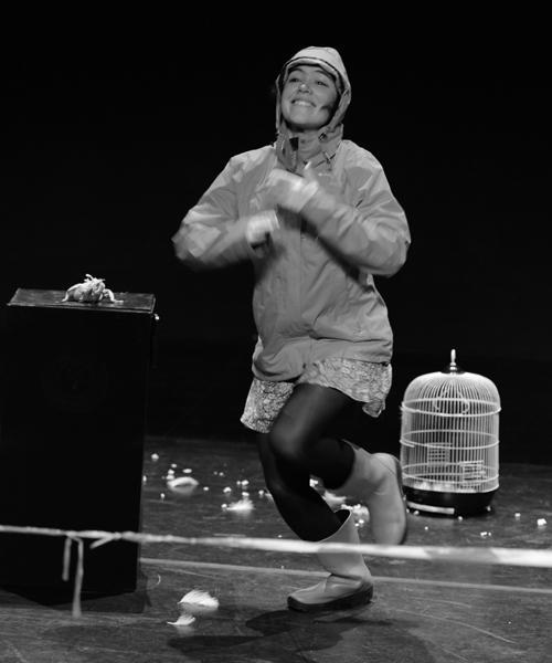 Little Frida est la petite fille sans âge, à l’oiseau mort. Personnage dadaïste que sa mère aurait abandonnée au milieu d’une forêt d’animaux morts, Little Frida évolue dans ce pays là où se mêlent étrangeté, réalité et rêves de cinéma. Face à nous avec son oiseau qui n’en finissait pas de mourir, elle nous bouscule. Ce solo singulier, entre rire et angoisse, est comme un cauchemar très doux, un songe monstrueux dont l’absurdité fait pleurer de rire.