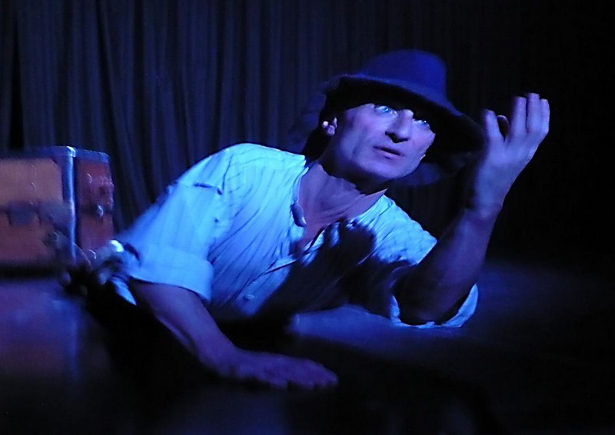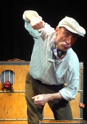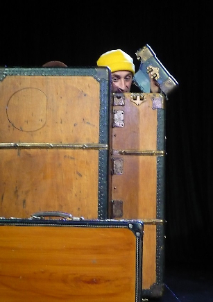 La malle-cabine devient tour à tour chambre, tribunal, table d'auberge... le comédien-conteur y puise tous les éléments qui lui permettent d'habiller ses histoires, tantôt effrayantes, tantôt plus drôles.