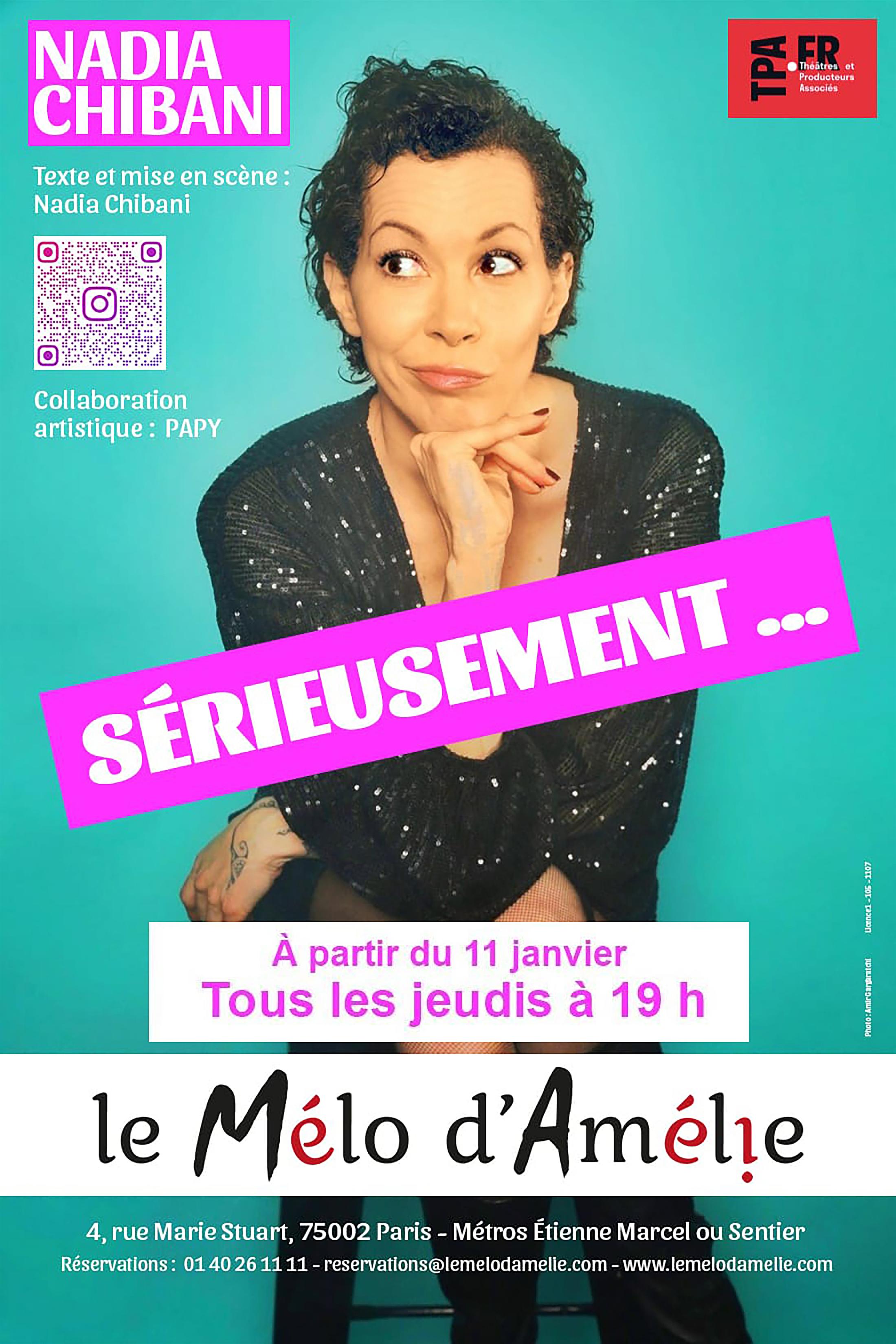 Après ses audacieuses Tribulations d'une Toquée, Nadia revient sur scène avec son nouveau one-woman-show : Sérieusement...