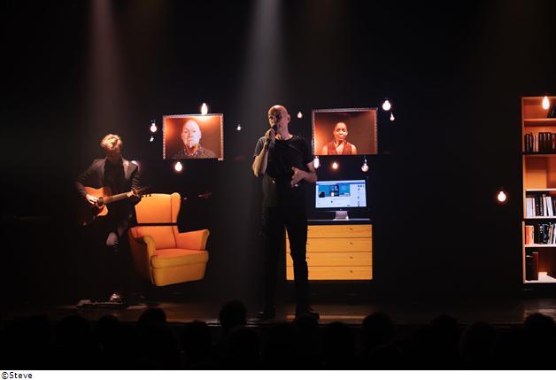 Avec Cliquez sur j’aime, Narcisse, nous invitait déjà, de façon concrète, via une application de son invention, à prendre de la distance avec notre société hyperconnectée. Il récidive. À mi-parcours entre théâtre, concert et performance vidéo, entre poésie et technologie, la forme esthétique hybride de cette création est véritablement inédite. Une claque artistique, qui, dans un enchevêtrement de musiques, de sons, et d’images via une multitude d’écrans de télévision XXL, porte un regard critique autant que poétique et amusé sur notre société du spectacle et notre civilisation « cancelisée ».