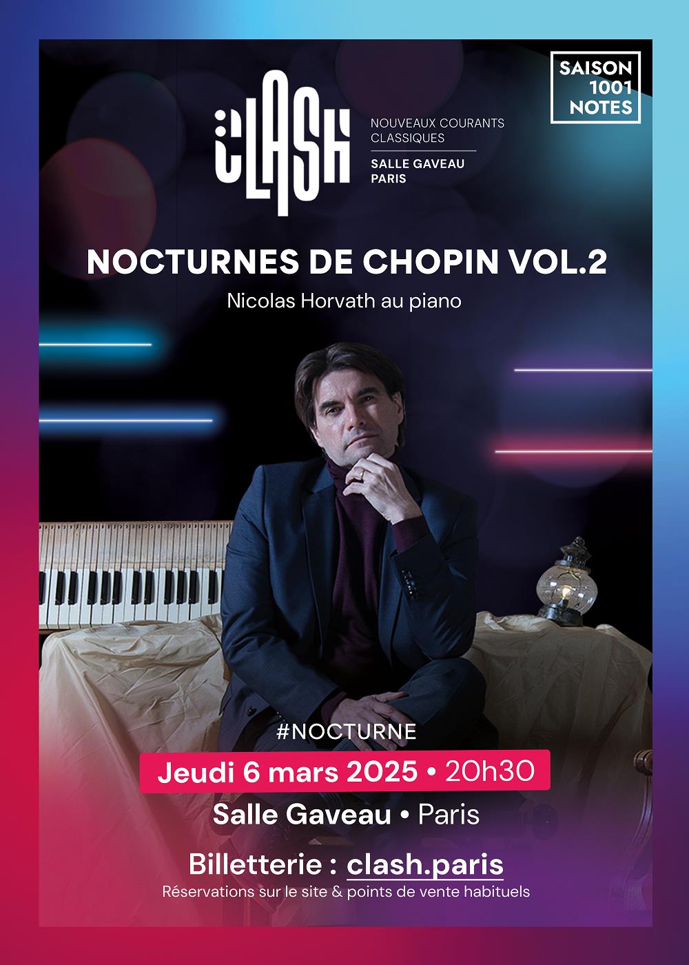 Le pianiste Nicolas Horvath, véritable aventurier du piano, explore avec les 88 touches de son piano tous les répertoires : classique, expérimental, minimaliste. Il propose un projet en trois opus, Nocturne Secret, consacré à l’intégrale des Nocturnes de Chopin. Il s'attaque aujourd’hui au 2e volume qu’il mélange savamment au répertoire de Glass.