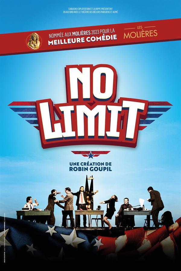 Vous mélangez pas mal de Monthy Python, un rien de Marx Brothers, une rasade de Buster Keaton, un soupçon de Benny Hill, ...Vous secouez le tout et vous aurez No Limit, comédie française totalement déjantée, irrésistiblement dingue, écrite et mise en scène par un Robin Goupil survolté. Ce moment de théâtre burlesque et loufoque fait rire autant qu’il effraie.