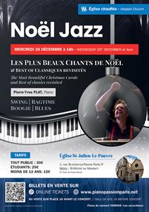 Les plus beaux chants de Noël, standards jazz et best of classiques revisités version ragtime, boogie, rumba, tango… Avec le pianiste Pierre-Yves Plat.