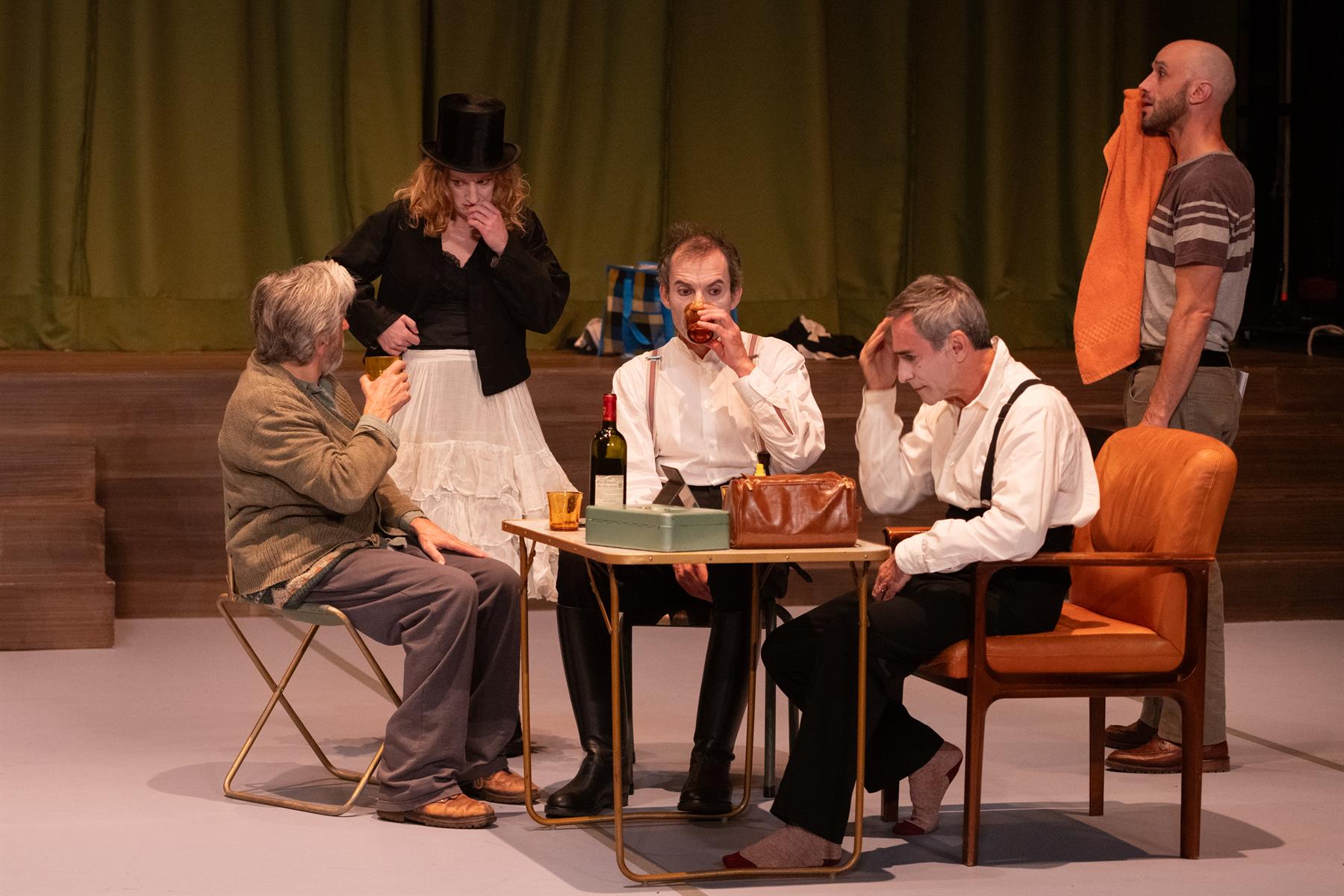 Fidèle à lui-même, Lagarce met le groupe et ses interactions au centre de sa dramaturgie. La constitution de cette troupe itinérante, fauchée et exubérante, désespérée et drolatique, était, pour moi, le premier enjeu de mise en scène. J’ai choisi de réunir des fidèles de la Compagnie des Petits Champs : Daniel San Pedro d’abord, pour jouer ce père chef de troupe, mais aussi Jean-Noël Brouté (le grand-père), Juliette Léger (Eduardowa), ainsi que Aymeline Alix (Joséphine), Clémence Boué (Mademoiselle), Vincent Dissez (Monsieur Tschissik) et Guillaume Ravoire (Max) qui étaient dans Le Pays lointain. Mais parce qu’une troupe comme une famille a besoin de personnalités nouvelles j’ai demandé à Judith Henry (la mère), Thomas Gendronneau (Raban) et Olivier Debbasch (Karl) de nous rejoindre.