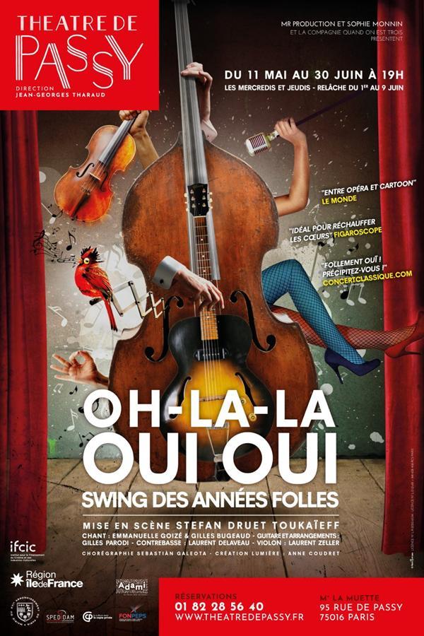 Un trio enthousiaste de musiciens accompagne un duo lyrique mené brillamment par une Emmanuelle Goizé gaie comme un pinson. Le spectacle fleure bon les années les 30 et l'insouciance goguenarde des cabarets parisiens mais, car il y a malheureusement un mais, l'ambiance reste empreinte, la mise en scène famélique et les ruptures de styles laissent songeur. Fort heureusement, la musique swing aide à passer un bon moment malgré tout.