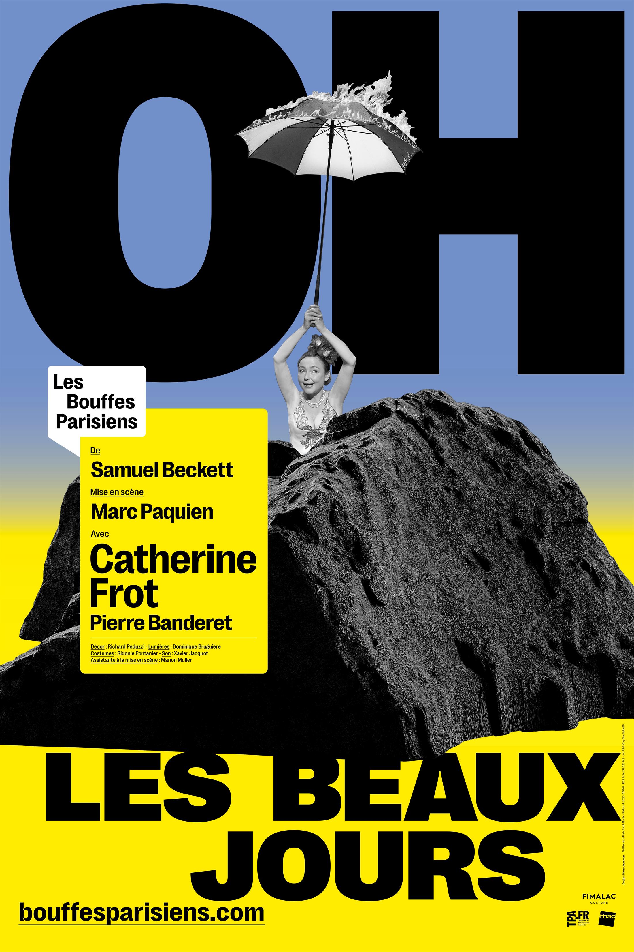 Aujourd’hui, c’est Catherine Frot qui s’empare de cette partition. Depuis longtemps elle souhaitait jouer ce texte, notre désir commun de théâtre nous a très vite porté vers ce choix lumineux. Elle sera donc Winnie, cette femme bouleversante qui adresse sans cesse les mêmes gestes et les mêmes phrases à Willie, époux taciturne se tenant à ses côtés. C’est elle qui prend possession du célèbre cabas noir, rempli de colifichets à la fois sublimes et dérisoires, ultimes objets de mémoire d’un monde comme sur le point d’arriver à sa fin.