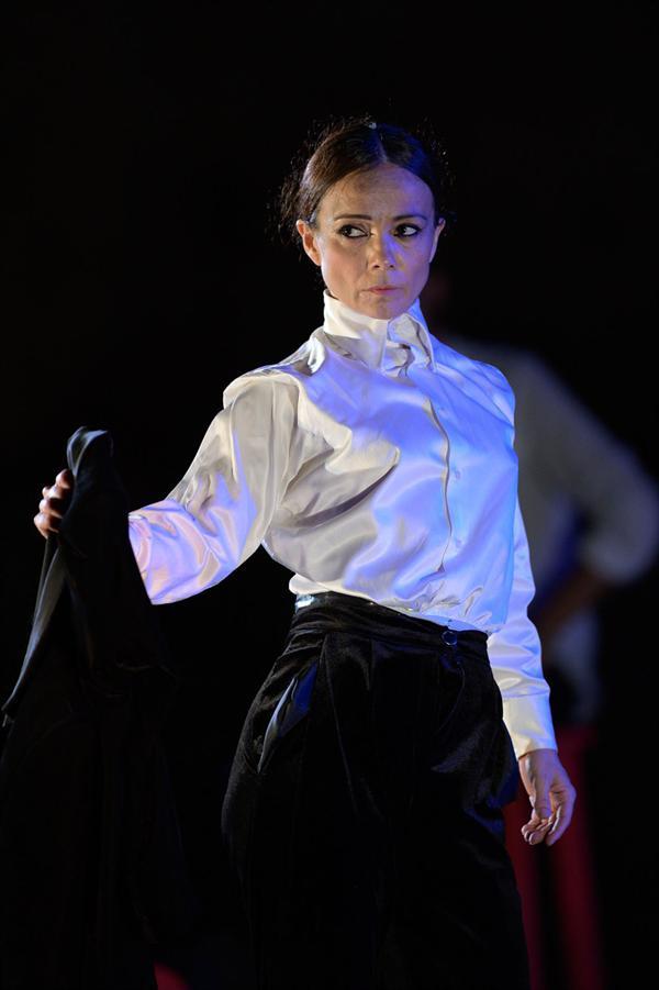 Le corps de la danseuse devient le support d’un vibrant voyage au cœur de la création. Se débarrassant progressivement de tous les artifices, la jeune femme se met à nu. Son interprétation ardente, soutenue par un quintet de musiciens et chanteur à l’unisson, revient à la source pure du flamenco. Le nom du fameux prototype qui donne son titre à la pièce semble fait sur mesure pour elle.
