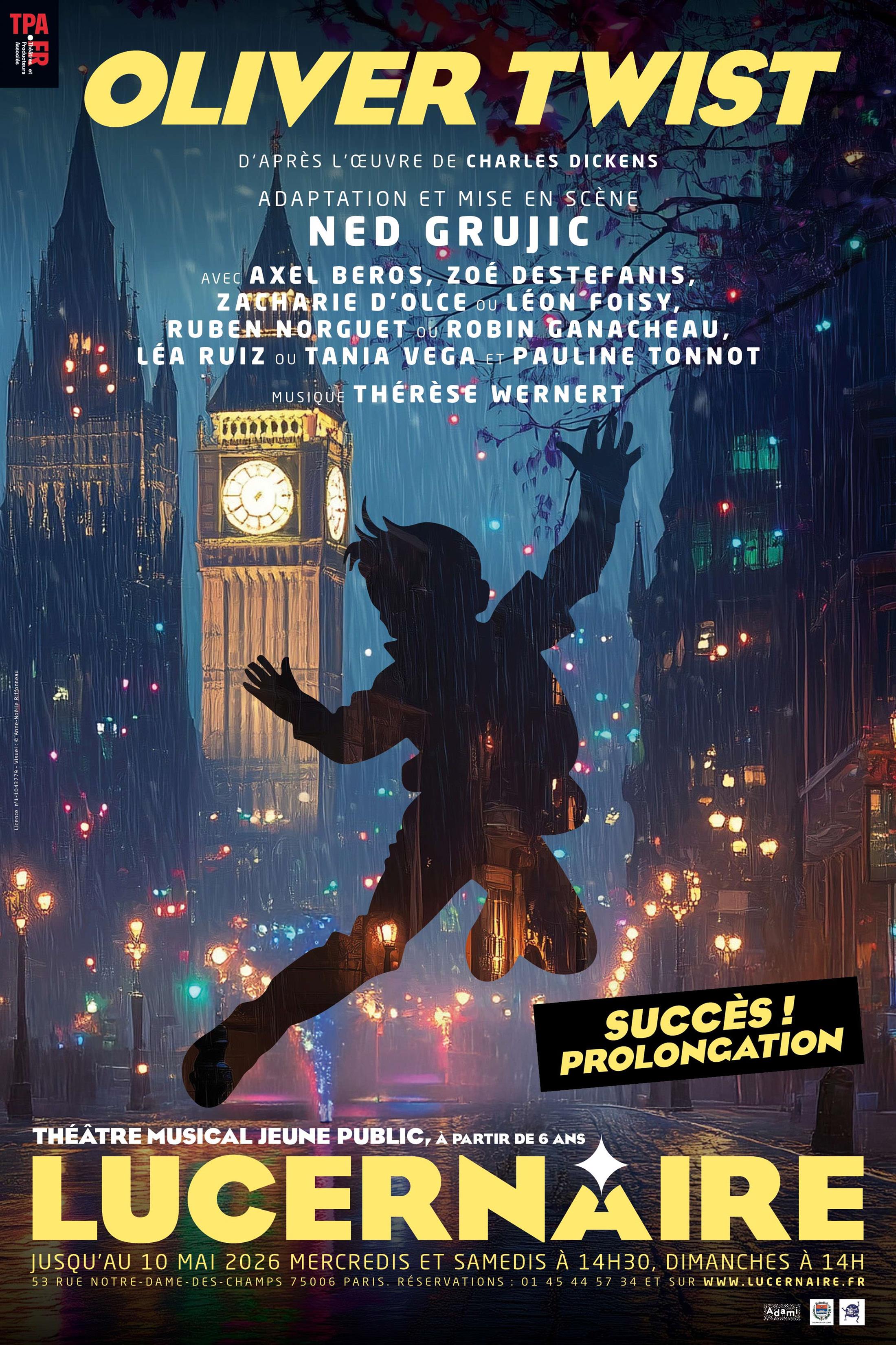 Les artistes nous emmènent dans les bas-fonds de Londres en nous contant cette histoire à la façon des bonimenteurs du XIXe siècle. Ils deviennent tour à tour Oliver Twist, Nancy la fille des rues, Bill Sikes le truand, le retors Fagin, Charley l’enfant rigolard ou le rusé Finaud.