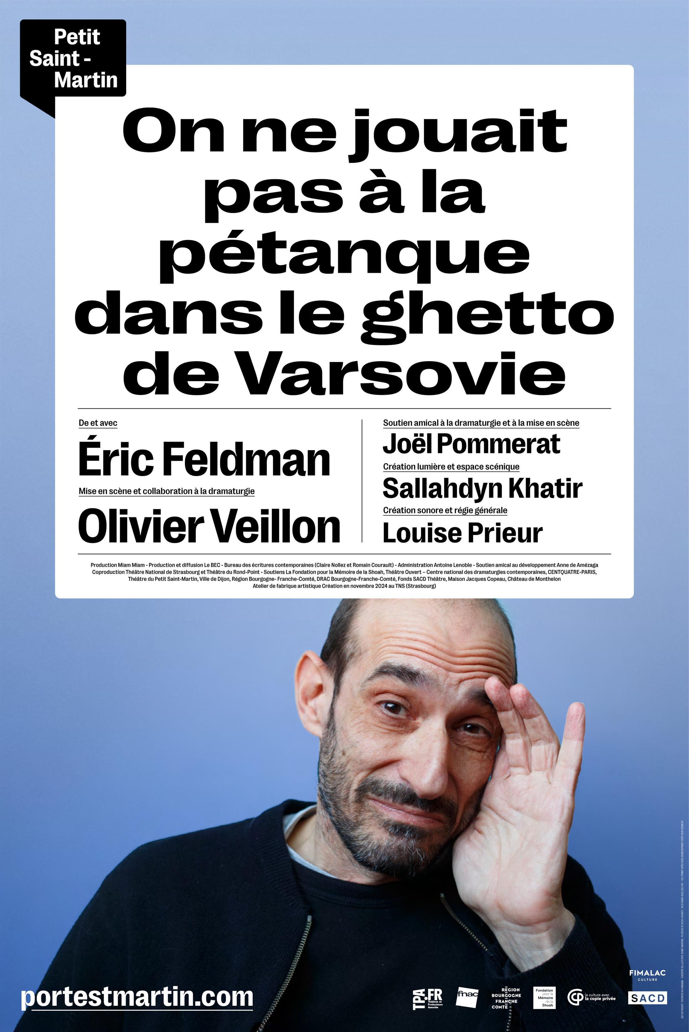On ne jouait pas à la pétanque dans le ghetto de Varsovie est une sorte de stand-up théâtral d’art et d’essai, conférence et confidence, mi idiot mi intello.