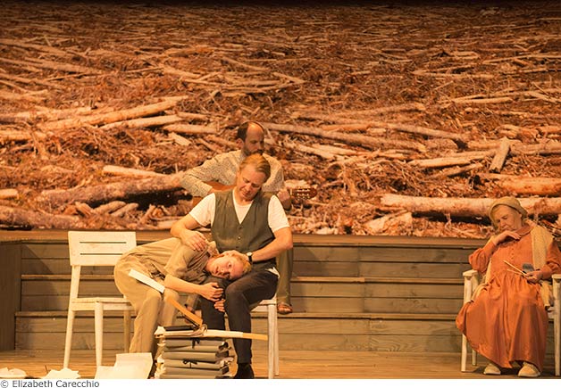 Sous la peinture de ces « scènes de vie à la campagne » (tel est le sous-titre de la pièce), Stéphane Braunschweig voit se profiler la métaphore d’un monde qui assiste impuissant à la catastrophe annoncée. Les frustrations d’une vie quotidienne où s’éloigne toujours plus l’horizon du bonheur personnel s’y font l’écho d’une frustration plus ample et plus globale : celle de se sentir si petits par rapport au salut d’une humanité en péril.