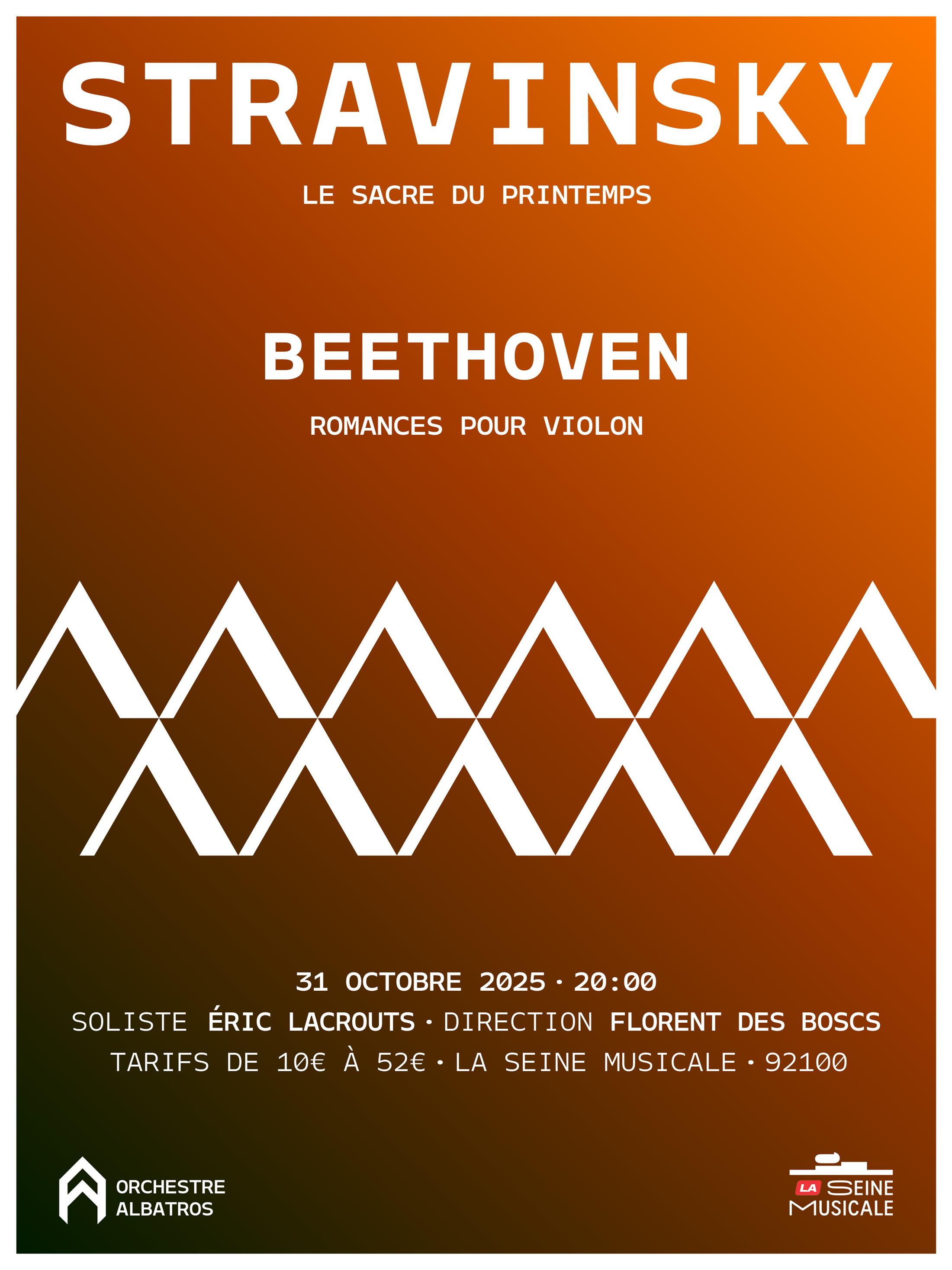 Il y a dans le chant du violon une tendresse qui ressemble à l’aube. Beethoven y dépose une lumière fragile, comme une confidence offerte au silence. Puis vient la danse des forces profondes, lorsque Stravinsky réveille la terre. Le rythme se fait battement du monde, appel d’un printemps premier, où l’homme rejoint la ferveur des rites anciens.