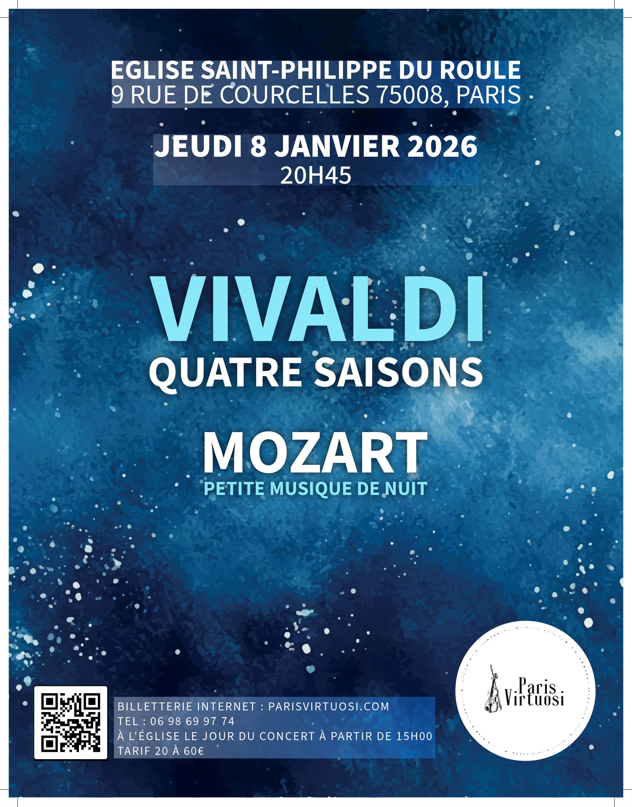Concert de l'Orchestre Paris Virtuosi sur Les Quatre Saisons de Vivaldi et Petite musique de nuit, de Mozart.