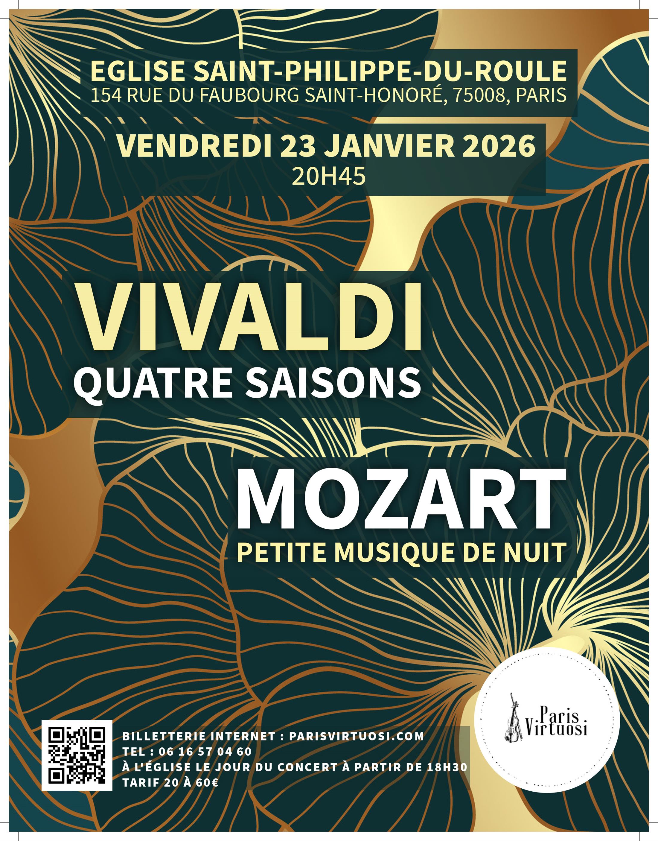 Concert de l'Orchestre Paris Virtuosi sur Les Quatre Saisons de Vivaldi et Petite musique de nuit, de Mozart.