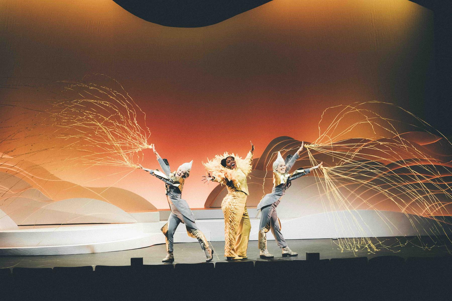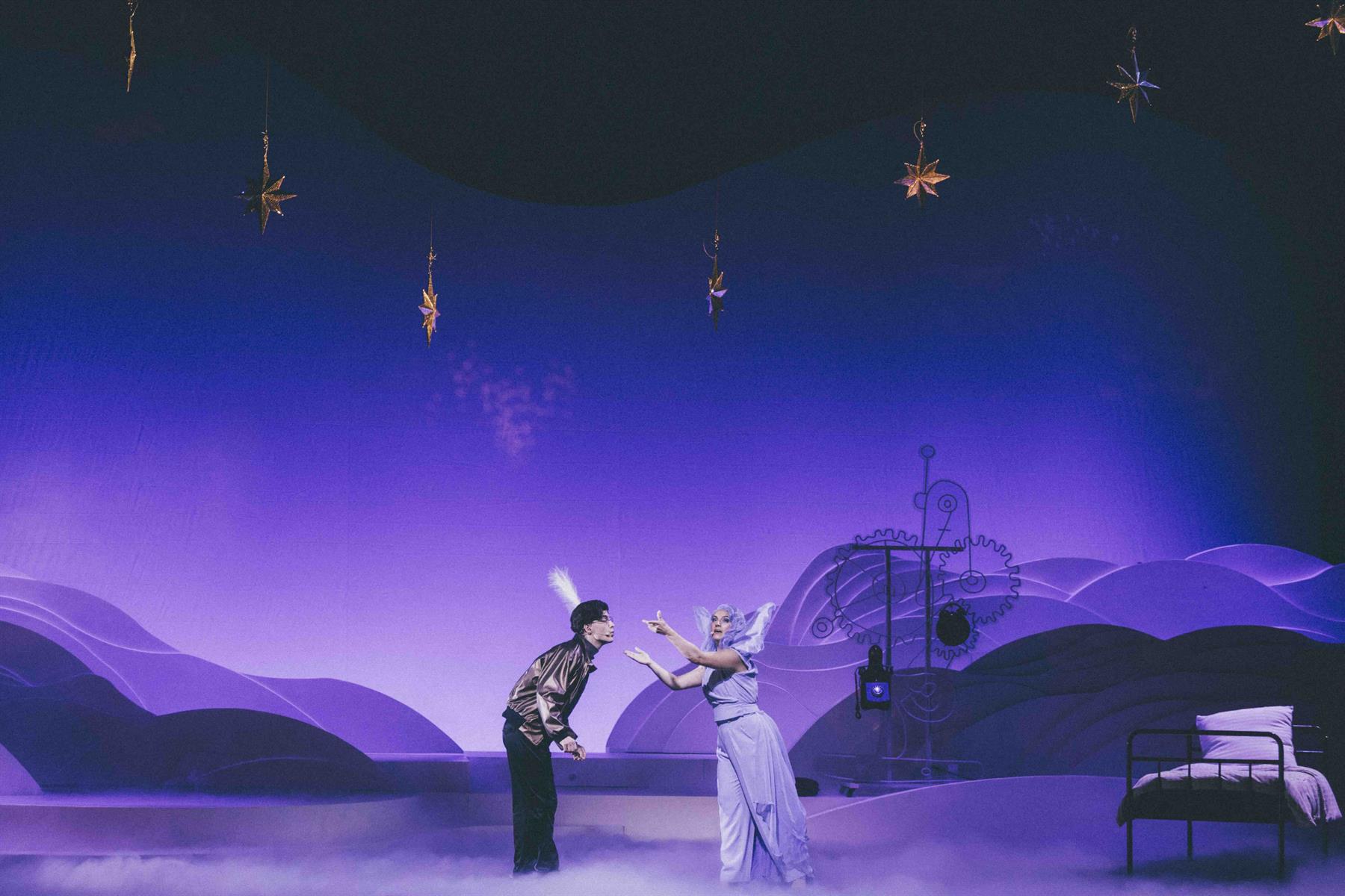 Un marchand de sable superstar, une fée des étoiles faussement surmenée, un Soleil tellement flamboyant interprété en alternance par Claudia Tagbo et Alex Ramirès, des crabes farceurs et des effets spéciaux dont une catapulte à étoiles filantes pas toujours au point…feront briller les yeux des petits et grands rêveurs.