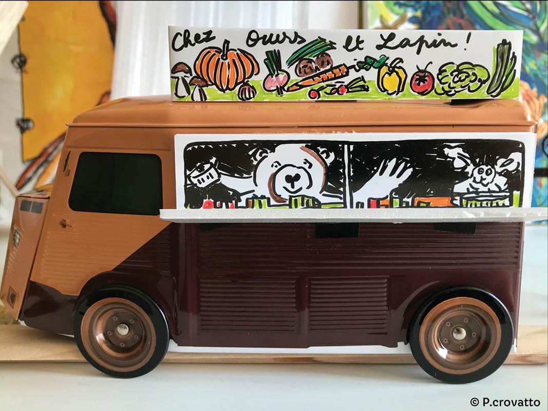 Une forêt, une roulotte, un ours ... Un ours oui, mais ... un ours qui joue du violon ! C’est plutôt original ! Un loup d’Italie, Dame Lama de Bolivie, un chimpanzé du Mali, une chauve-souris d’Haïti … Une jolie brochette d’animaux présentés de manière burlesque : Les rencontres se succèdent… Et notre ours musicien est décidément bien vorace ! Une forêt silencieuse qui observe. Ouf, Ptit lapin malin devient son copain et lui fait découvrir de bons légumes et de nouvelles recettes.