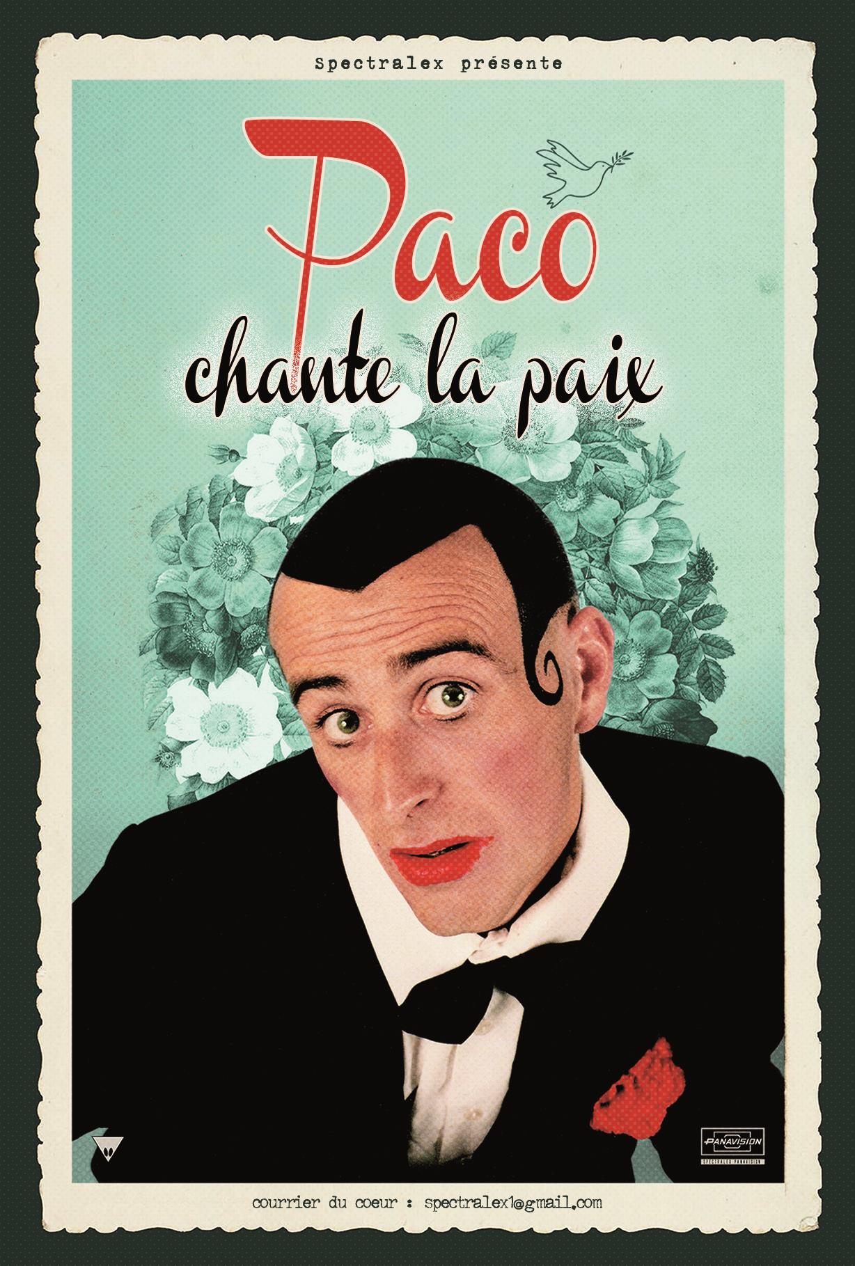 Seul sur scène, comme un naufragé volontaire, sa fébrilité apparente envoûte les masses en liesse de tendresse avant même qu’il n’entonne son premier tube. Car Paco ne compose que des tubes : Sauvez la Terre, Il faudrait que tout le monde fasse une ronde...